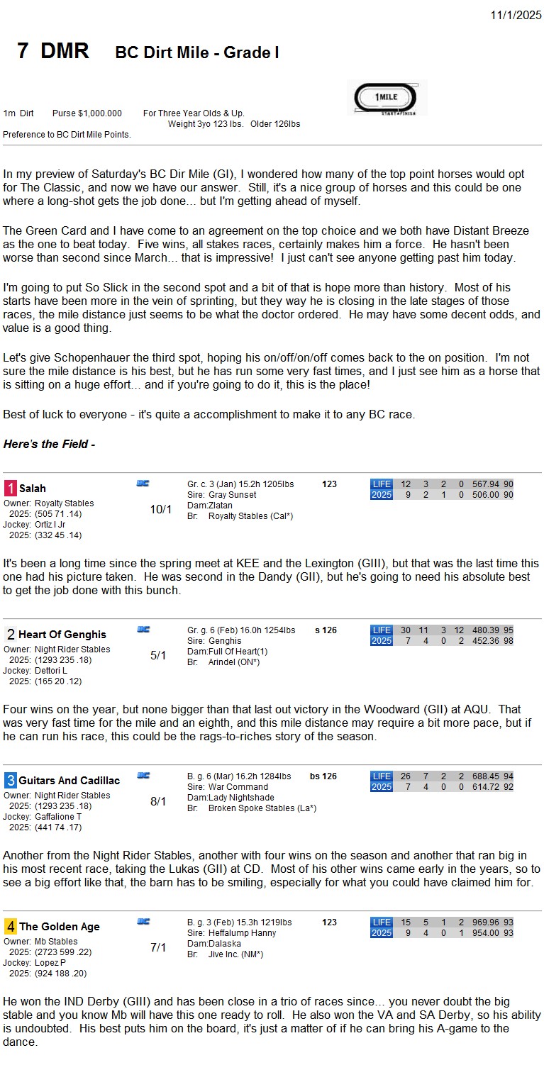 Home › THE BREEDERS CUP › BC 2025 › Can The Sidley Stud “Breeze” To Victory in BC Dirt Mile?